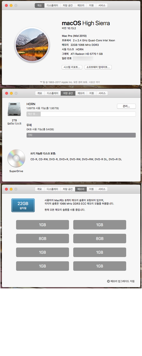 맥프로 2.4GHz x 2 램 22GB 2TB ATI Radeon 5770