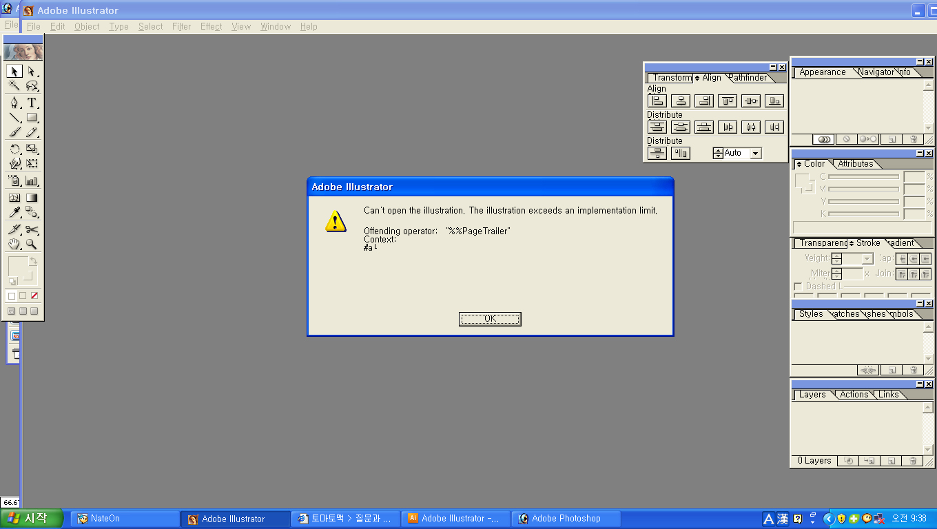 일러스트에 저장하고 불러올때마다 오류!!